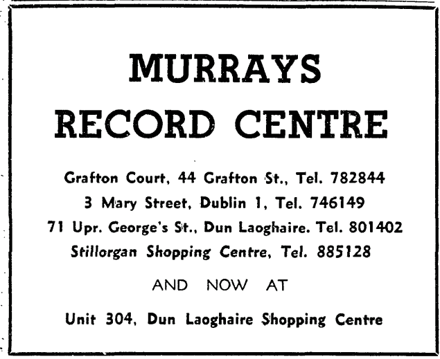Meanwhile, Murray’s was a hallowed local institution, suppling an entire generation with Beatles and Stones LPs, and becoming the hang out of choice for a young Bob Geldof and his future bandmates in The Boomtown Rats.
