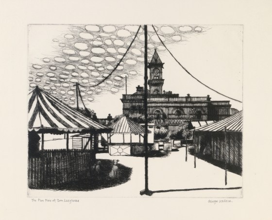 Picture credit: George Wallace (1920–2009), The Fun Fair at Dun Laoghaire, Etching © Estate of George Wallace and CARCC, 2020…